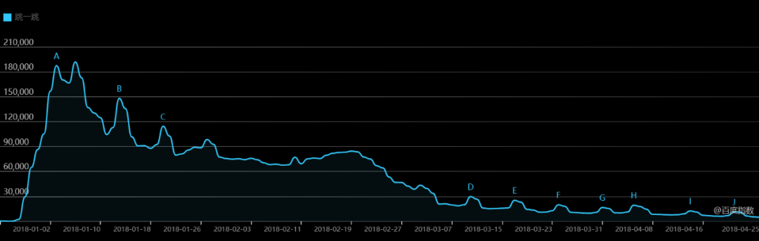 指数在在1月初达到顶峰后,并没有迅速衰落,除了挑战高分,“跳一跳辅助器”“盒子彩蛋”等话题也引发了玩家的大量讨论,春节期间迎来的一波增长,也延缓了衰落趋势,使游戏热度延续到了3月。