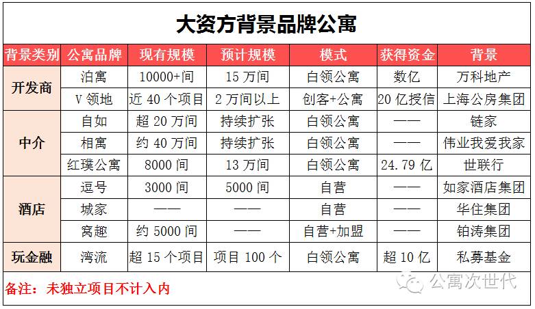 有一些天生“富二代”型品牌公寓,他们动辄投入数10亿,规模上万间,来势汹汹……