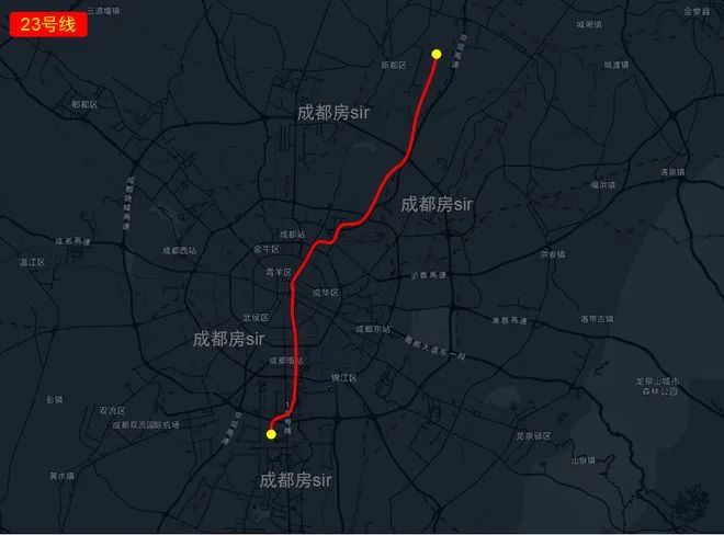 成都地铁23号线将是一条连接新都区到高新区的南北线路,自西向东依次经过高新区、锦江区、成华区、新都区。预计将起于高新区益州大道与盛邦街交汇处附近,止于新都区西南石油大学东北侧。