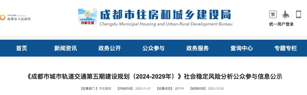 11月21日,成都市住建局官网发布《社会稳定风险分析公众参与信息公示》。