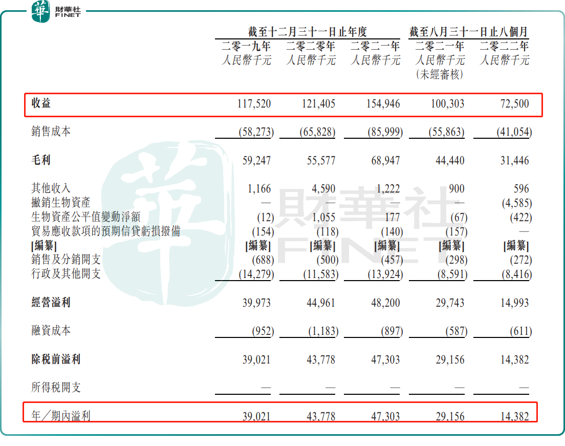通过经销商将盆栽蔬菜售往餐厅和酒店的方式,富景中国过去三年销量稳步提升,由2019年的770.6万盆增至2021年的1027.3万盆。公司经营业绩也因此水涨船高,收入由2019的1.18亿元增至2021年的1.55亿元,期内溢利由3902.1万元增至4730.3万元。