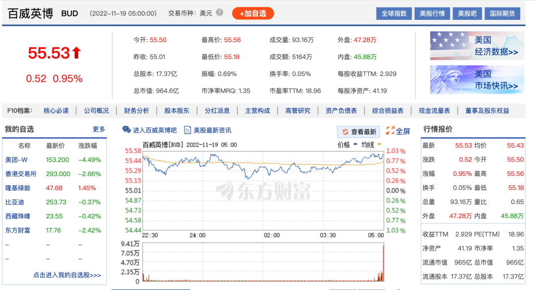 尽管屡屡碰壁,但从最终结果看,百威的赞助商权益还是得到了国际足联与承办国的保护。在资本市场,“禁酒令”也没有给百威太大影响。11月18日,国际足联发布禁酒消息当日,百威英博以55.53元/股收官,同比上涨0.95%。酒讯注意到,10月21日,百威英博股价为46.24元/股,一个月内,百威英博股价同比上涨20.09%。