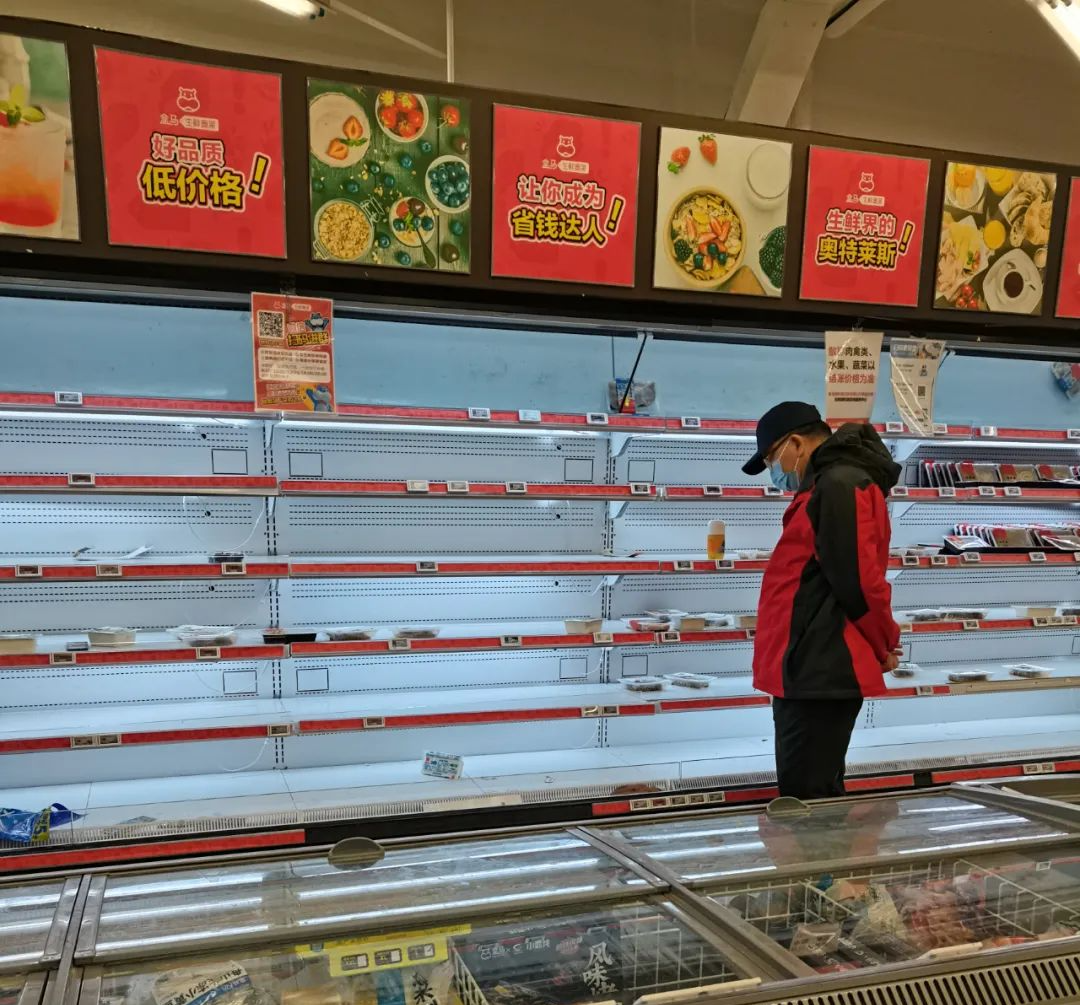 ▲ 北京一盒马生鲜奥莱临关门时空落落的货架。图 / 曹婷婷摄