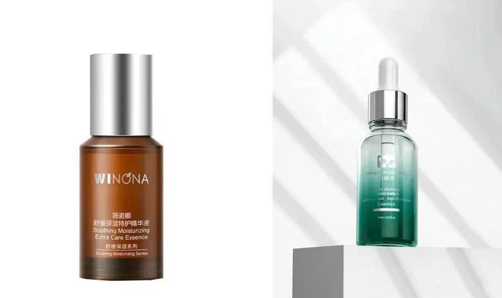 △薇诺娜舒缓保湿特护精华液(左),百植萃舒缓修护精华液(右)
