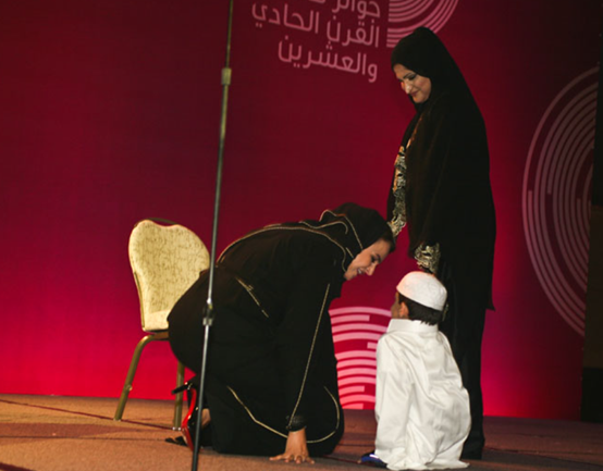而由于对母子因为对卡塔尔地区残疾儿童所做出的的杰出贡献,他们在2009年共同获得了21世纪领袖奖的无名英雄奖项。同年获奖的,还有网球名宿大小威廉姆斯姐妹。这张领奖照片,也是互联网上少见的加宁母子同框。