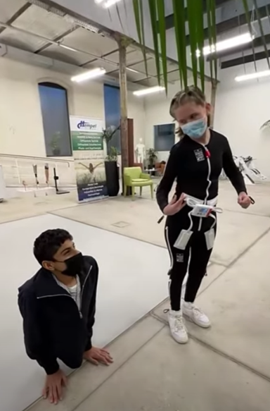根据加宁的描述,Mariam(右)穿上了Molli Suit之后步行速度最高可比原来快上35%。