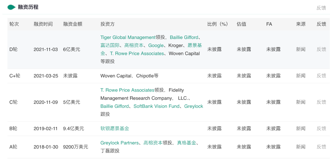 近年来,Nuro几乎保持着一年一轮的融资节奏,总计融资额超21亿美元。