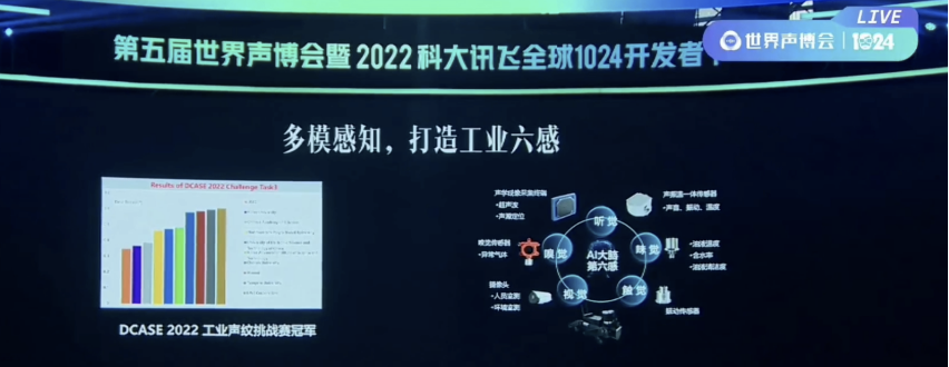 今年,科大讯飞又在全球工业声纹挑战赛获得了第一名。让机器通过声音判断及其的运行状况。再结合图像识别、触觉以及嗅觉等等这些味觉,以此形成了工业六感。而这工业六感,也就可以成长为整个工业互联网最核心的底座能力,赋能传统产业。