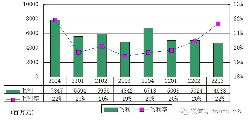 唯品会2022年第三季度毛利为47亿元(约6.58亿美元),上年同期为48亿元;唯品会2022年第三季度毛利率为21.7%,上年同期的毛利率为19.4%。
