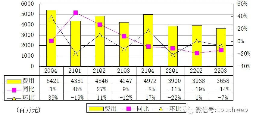 唯品会2022年第三季度费用为37亿元,较上年同期的42亿元下降13.9%。