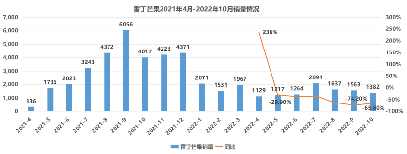2021年4 -12月,雷丁芒果总销量达3.04万辆;而今年1-10月总销量仅仅达到去年9个月总销量的一半,总销量约1.6万辆;今年5月以来销量呈持续下滑趋势。在国内同类微型车销量排名前十名中,几乎看不到雷丁汽车的影子。