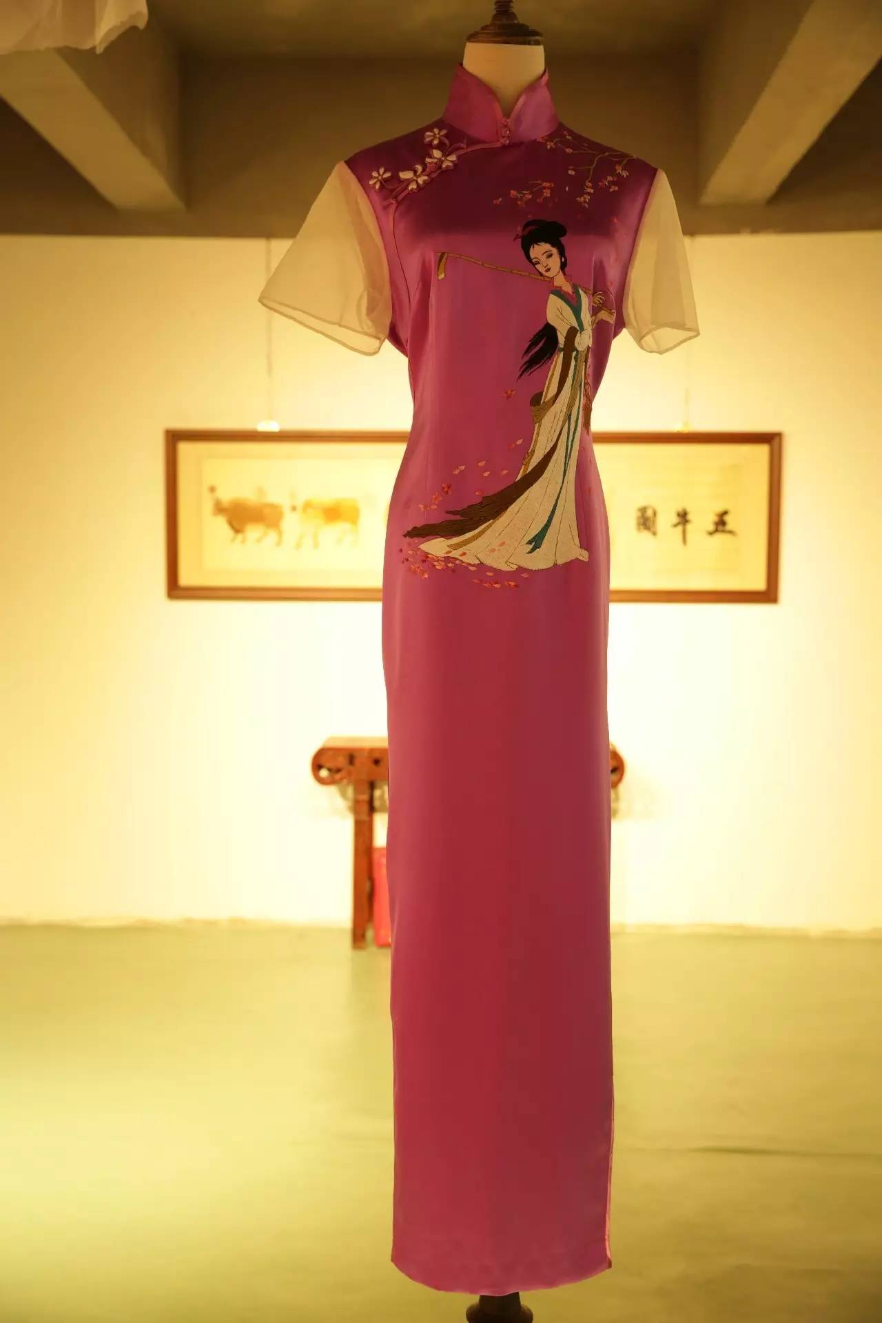 十二钗旗袍全部采用上等桑蚕丝,并选用桑蚕丝中的重缎、乔其、双绉、欧根纱、电力纺等,旗袍中所有装饰全部手工制作。