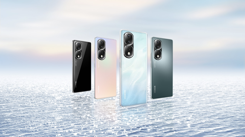 外观设计部分,荣耀80 Pro 也延续了荣耀数字系列的家族式设计,背部采用双镜 ID 设计语言。配色则有亮黑色、墨玉青、碧波微蓝、粉映晨辉共计四款配色。