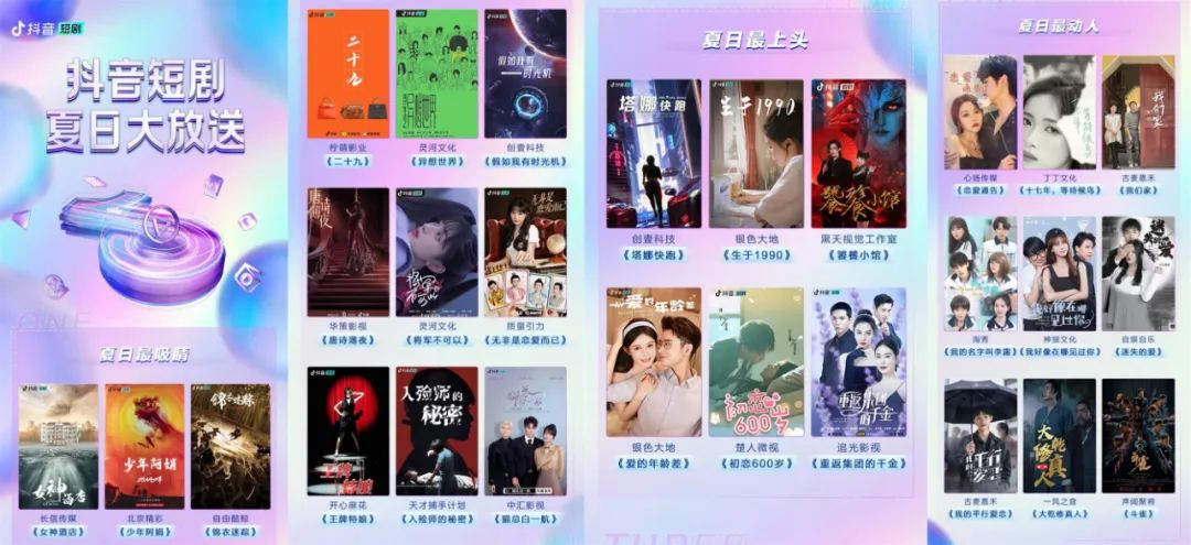 可以从抖音短剧“夏日大作战”的片单做一观察,其中“夏日最吸睛”单元就有多部和头部公司合作的项目,列出的项目方包括长信传媒、北京精彩、自由酷鲸、柠萌影业、灵河文化、华策影视等。