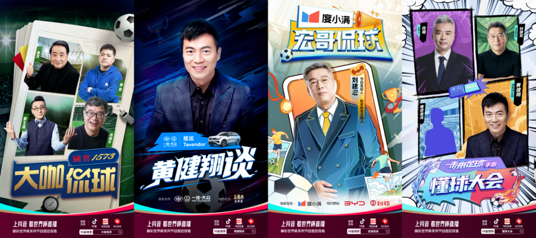 咪咕和抖音作为长、短形态观赛的主力平台,他们开发的自制世界杯节目甭管是长的短的、轻的重的、直播的录播的,都正在被各行业的赞助商追着投放。