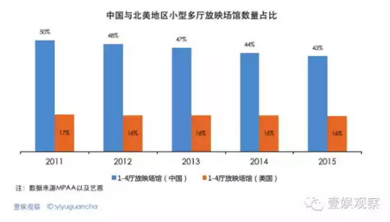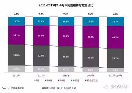 数量占比17%的中型多厅影院贡献了46%的中国市场票房