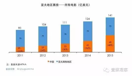 2011-2015全球票房增长18%,亚太57%,中国240%