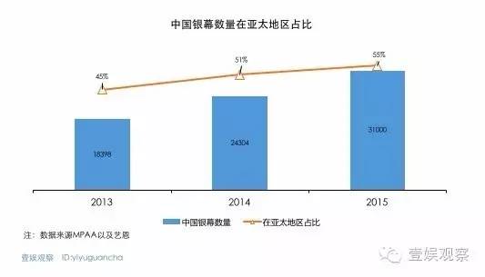就像森局在演讲中提到的,“从2003年到2015年,中国电影实现了年平均复合增长率超过35%的市场增幅;从2003年中国的电影银幕不足1800块,到2015年底中国的银幕发展成为32868块,到今天我站在这里跟大家交流的时候,中国的银幕总数又达到37700块,今年年底中国银幕总数有望达到40000块;从中国的电影不足北美电影市场的1%,到2015年底发展到北美电影市场的65%,今年我们有可能更大的缩小和北美电影市场的差距。中国的电影作品从过去不足100部的故事片年生产量,现在稳定在700部左右的框架。”