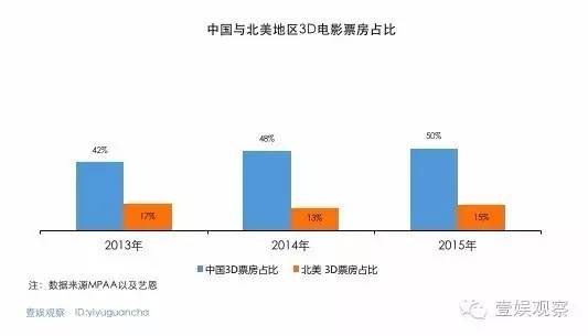 240%票房高增长的“隐”擎:北美3D电影票房占比逐年跌至15%,中国连续走高达50%
