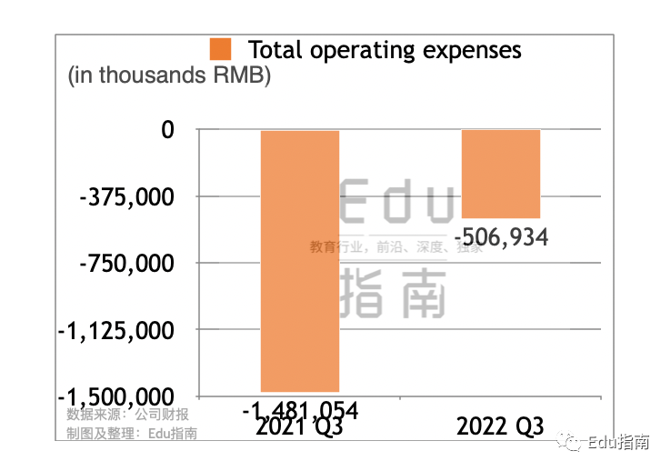 高途公司Q3总运营费用为5.1亿元,而上一财年同期为14.8亿元,本财季总运营费用减少66%。季报称运营费用减少的原因包括:业务重组导致员工减少,以及学科辅导服务的品牌和营销活动支出也大幅下降。
