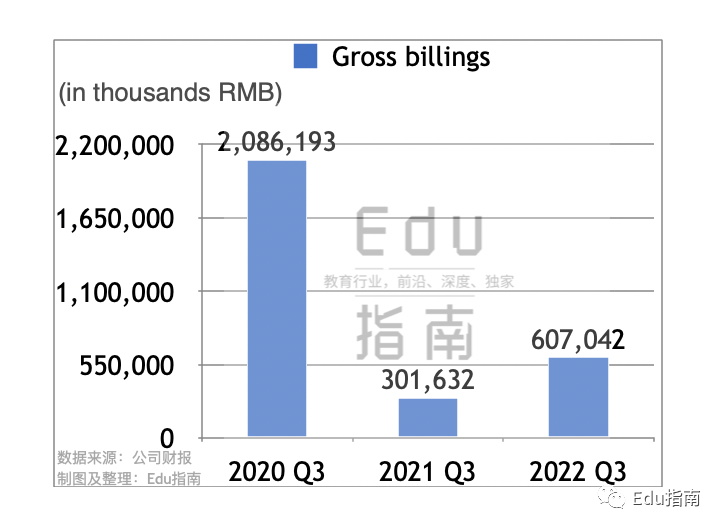 本财季毛收入gross billings近6.1亿元,同比上一财年的Q3的3.0亿元,本财季毛收入增长101%。与2020财年Q3的20.9亿元相较,本财季下降71%。在线教育公司的毛收入通常来自在线课程等交易额。