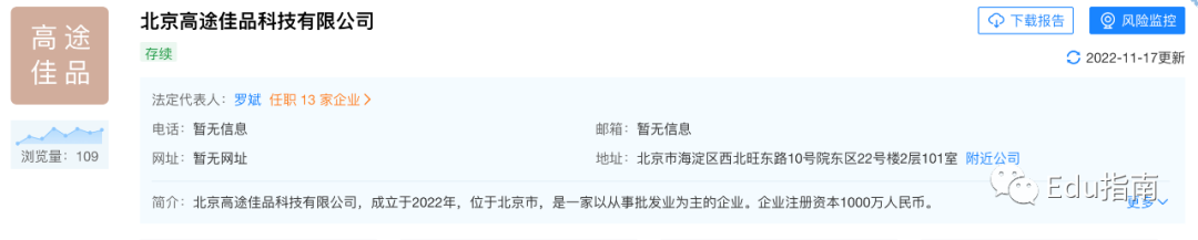除财报中提到的业务进展,根据工商消息,高途近日成立“北京高途佳品科技有限公司”。该公司简介为“以从事批发业为主”的企业,经营范围包括技术服务、生鲜、农产品、电子产品零售批发等。