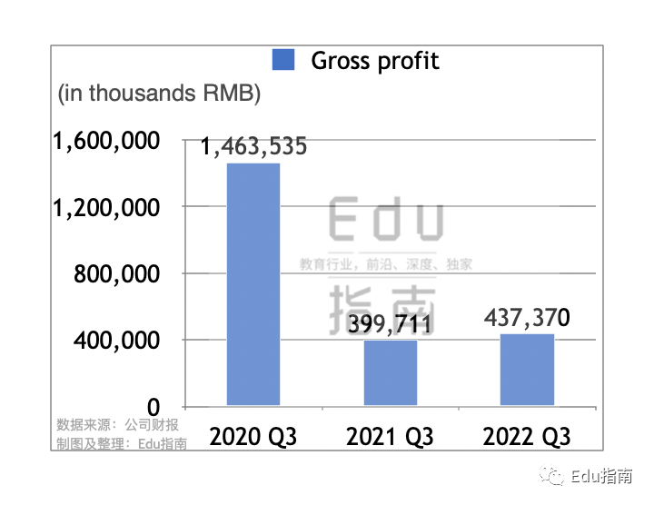 本财季高途公司的毛利润为4.4亿元,上一财年同期为4.0亿元,本财季同比增加9%。而相较2020财年Q3的14.6亿元,本财季毛利润减少70%。
