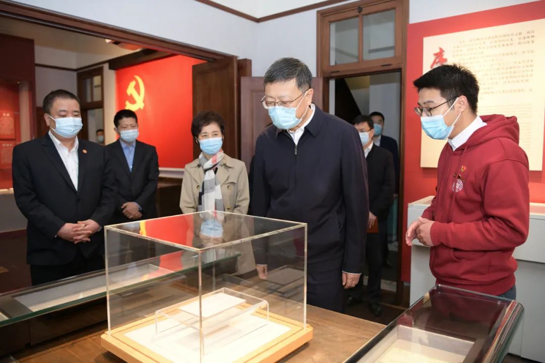 座谈会前,陈吉宁参观了《共产党宣言》展示馆。这里曾是《共产党宣言》中文全译本首译者、复旦大学老校长陈望道的住所,集中展现了《共产党宣言》的诞生、中译、传播及其影响,真切展示了陈望道同志追求真理、信念如磐的一生。陈吉宁认真听讲解、看展陈,深入了解史料背后所蕴含的红色记忆与真理力量。陈吉宁说,重温“信仰之源”,再次受到精神洗礼。心有所信,方能行远。要不忘初心、牢记使命,更好传承红色基因、赓续红色血脉,凝聚起奋进新征程、建功新时代的磅礴力量。要紧密结合党的二十大精神学习宣传贯彻,在学思用贯通、知信行统一上下功夫,不断创新宣讲方式方法,讲好“信仰之源”的故事,传播好党的创新理论,让听党话、跟党走的信念成为自觉追求。陈吉宁还来到复旦大学校史馆,了解学校创办和改革创新历程。