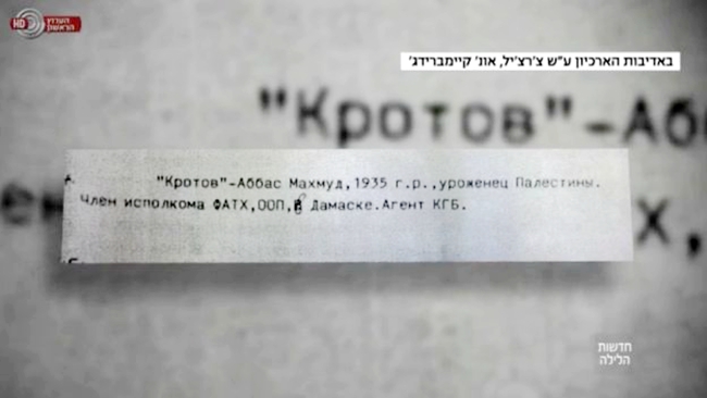 研究者称,在1983年克格勃成员培养名单里发现了一份文件,上面写着:代号“Krotov”(鼹鼠),马哈茂德·阿巴斯,出生于1935年、巴勒斯坦,巴勒斯坦解放组织下巴勒斯坦民族解放运动(简称法塔赫)执行委员会成员,大马士革,克格勃特工。以色列电视台还播出了相关文件的画面。