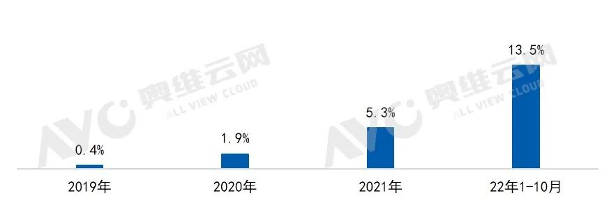 2019-2022年10月中国彩电市场120Hz+产品销量份额表现