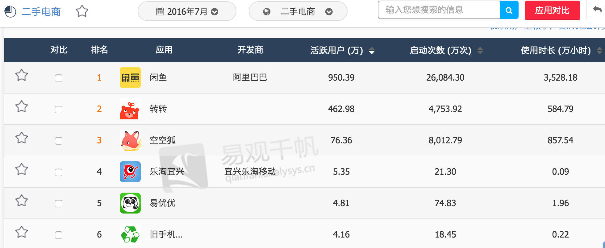 另根据易观数据,截止7月,活跃用户最高的二手电商依然是闲鱼,第二即是转转,加下来其他平台就不是一个数量级了。