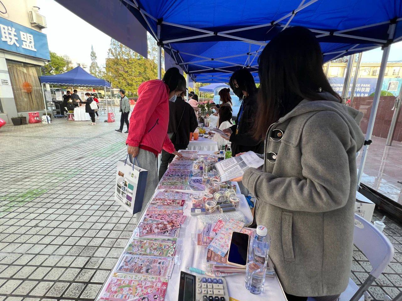 上午10点,JackSpace创意集市在上理工科技园门口的长廊拉开序幕。十几个摊位一字排开,分为科技、文创、生活、创业与就业四大主题板块,少女心十足的手账本、氧气满满的多肉盆栽、高效能“平替”护肤品、用来打发午后时光的小零食……琳琅满目的商品,让人挑得眼花缭乱。