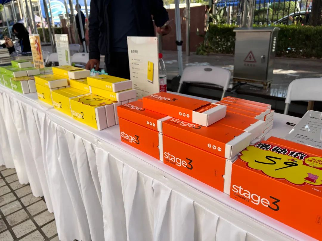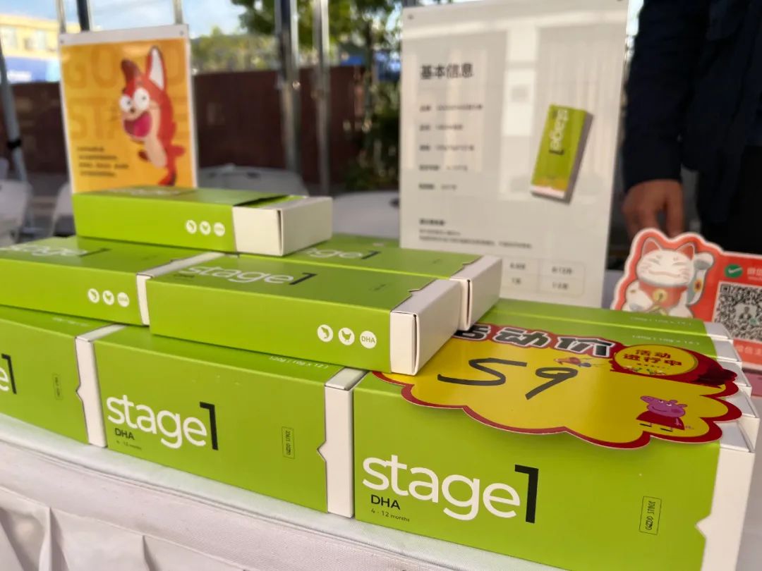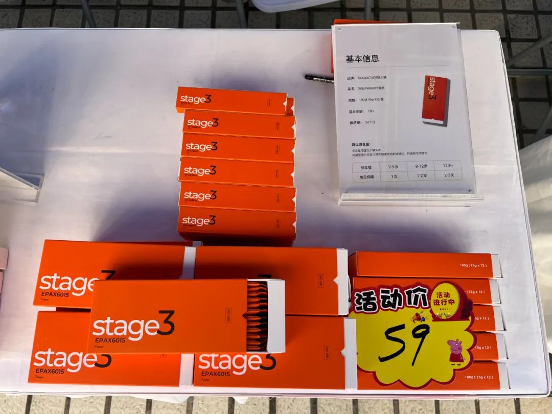 GOODSTAGE顾大橘,是集市上的创业品牌之一。摊位上放着三款盒装猫条,分别为1段DHA猫条、2段膳食纤维猫条、3段EPAX6015猫条,为不同年龄段的猫咪补充餐食营养。包装风格年轻化,标注了专业建议的每日喂食量,在猫咪零食领域作如此细分,并不常见。