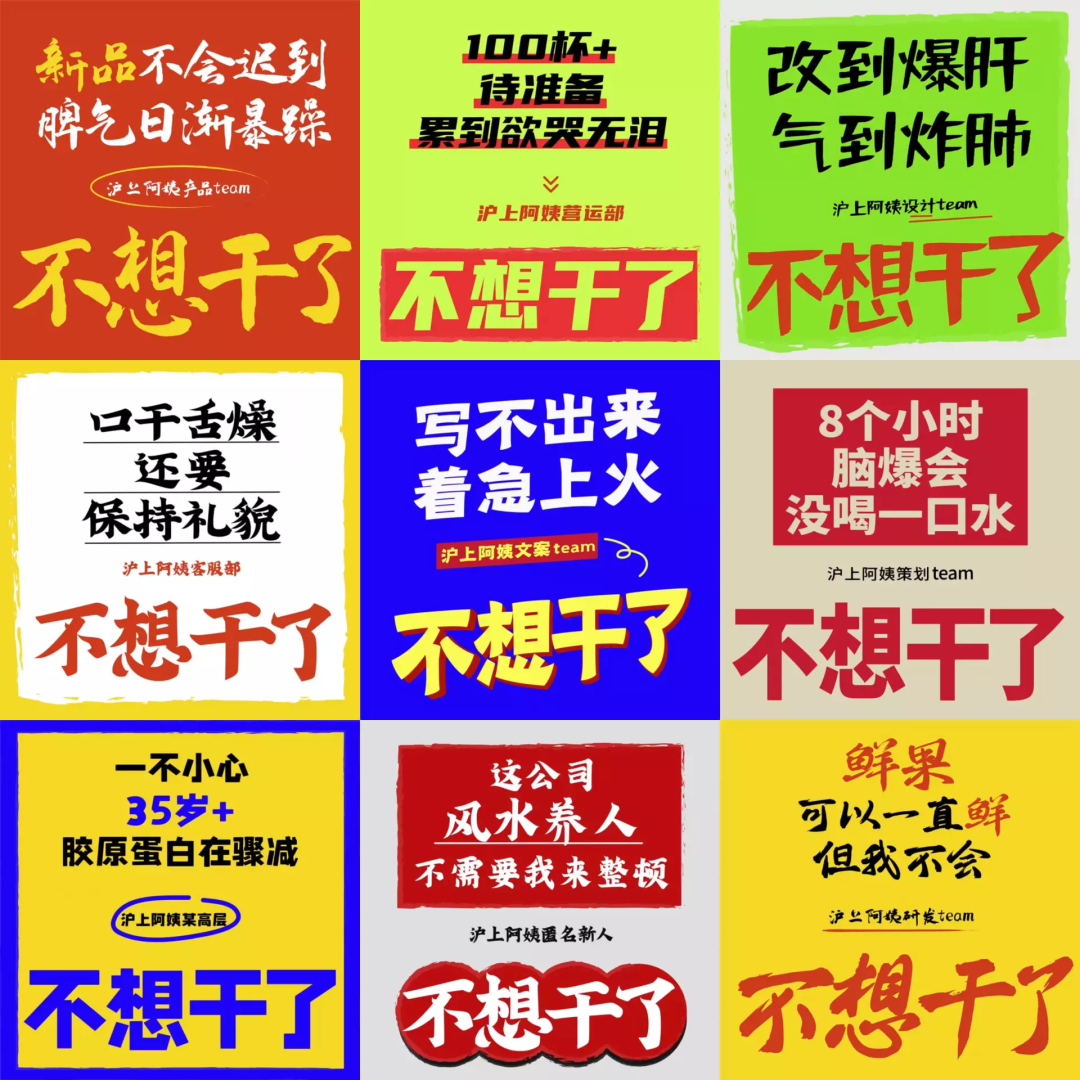 官博的9张海报里,9个不同职能的部门纷纷表示“不干了”,有力地控诉了工作中的各种难处痛处,看得一众打工人们又爽又怕。