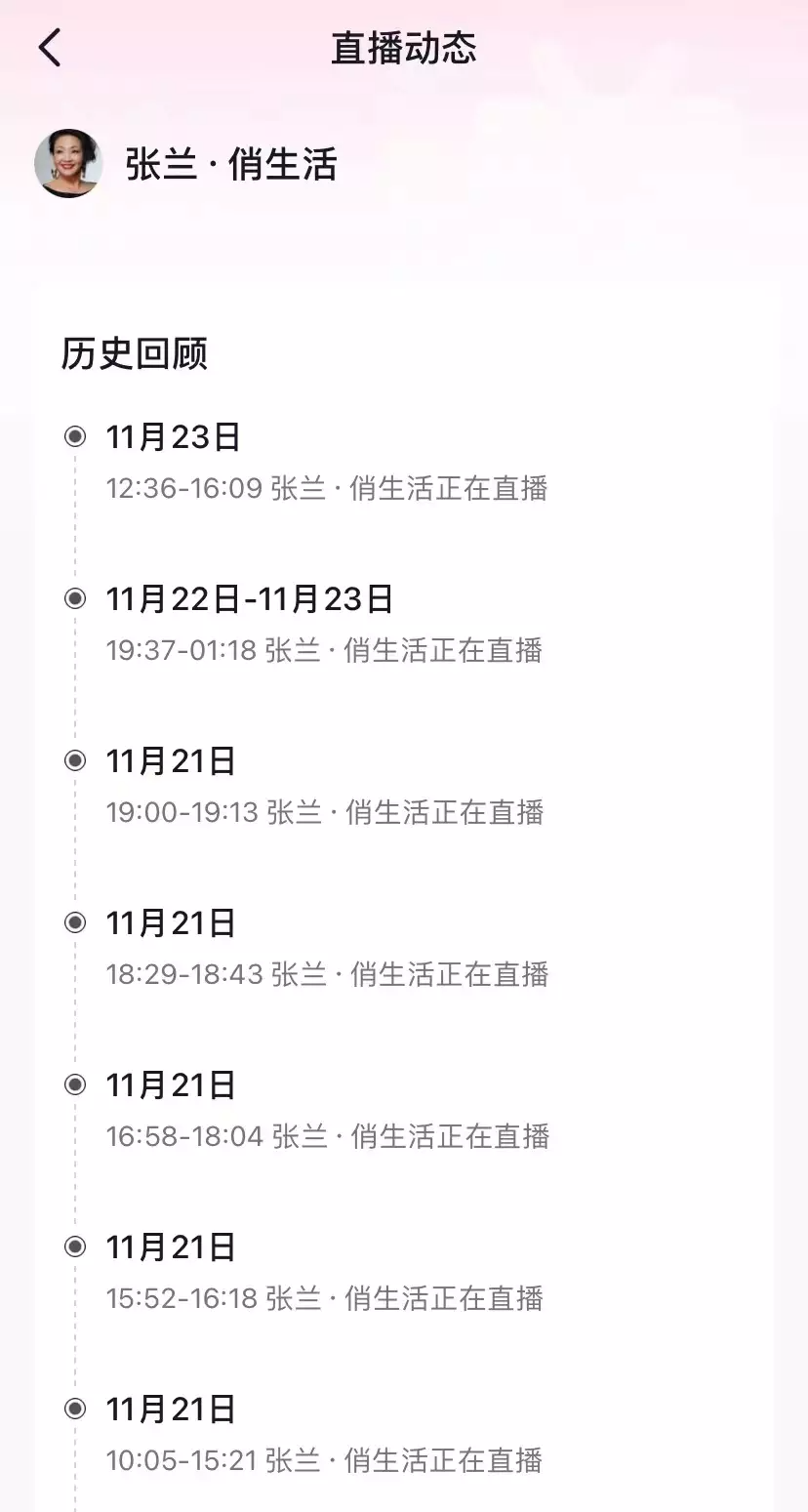 11月22日晚上照常直播,直播时长高达5h41m,GMV破700万。截止至11月23日,张兰抖音粉丝达283万,涨粉90.6万。