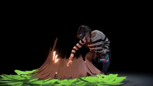 其次,长时间站立对着空气作画,不免会出现手抖情况,对体力也有一定要求。当绘画增加难度后,创作周期也更长。目前,创作一幅小型 VR 绘画作品往往需要一周时间,大型场景会长达一个月。