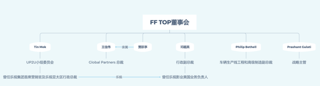 在这次内斗中,FF TOP无疑起到了至关重要的作用。而在FF TOP的董事会中,6人中的3人和贾跃亭有着明显联系。