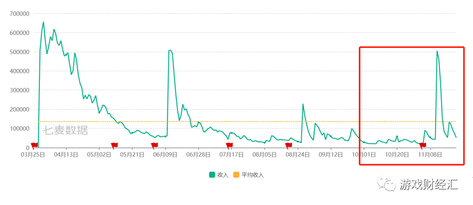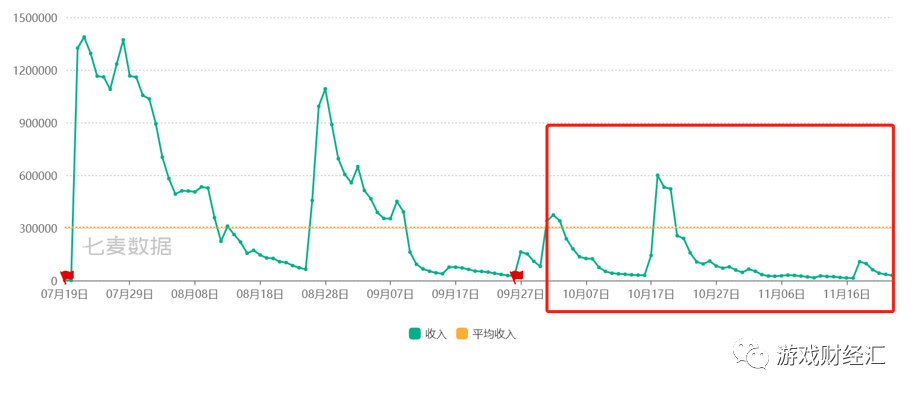 图:《蛋仔派对》上线以来iOS收入趋势;来源:七麦数据