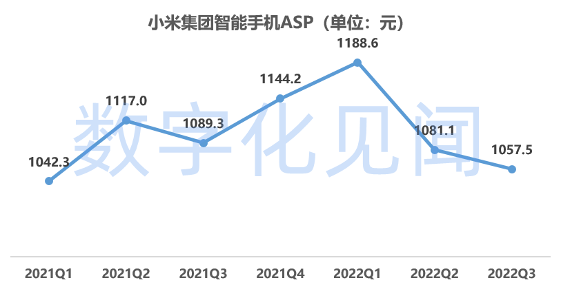 为何会如此说?数字化见闻同样通过其财报数据来论证:2022年三季度,小米在中国大陆地区定价在人民币3000元及以上的智能手机出货量同比增长了14%,智能手机ASP(平均销售单价)同比增长了9%,规模及销量双双实现正增长,看似高端化战略的推进还是不错的。