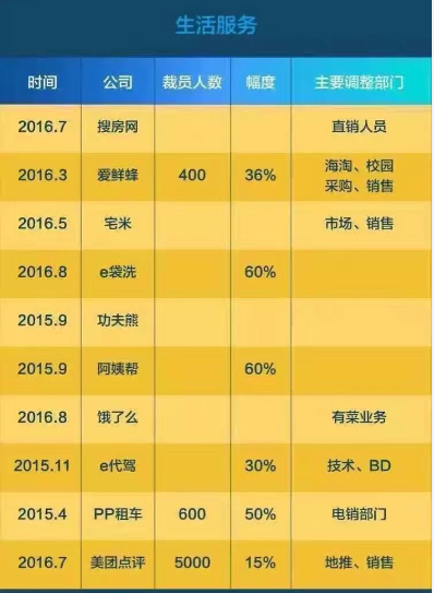 同时,生活服务、电商等互联网垂直细分领域,竞争已经达到了白热化的程度,随着市场空间被不断挤占,企业不得不从内部开始节流。