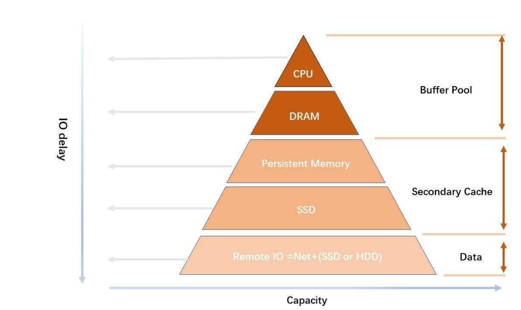 如上图所示,TDSQL-C 团队在远程存储和 buffer pool 之间实现了二级缓存层,它使用本地存储介质。从 buffer pool 中淘汰的页面缓存在该层——实际上并非淘汰,而是把从buffer pool 移出的数据缓存到本地的 SSD存储或AEP存储。下次访问该数据时,满足一定的条件下,可以直接从本地读取,这样就能最大限度地降低网络 I/O 的消耗。