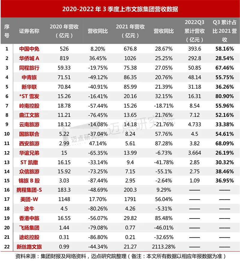 以2022前三季度国内旅游发展现状为宏观背景,本文重点以上市文旅集团公司为研究样本,从微观视角,通过对三季度财务数据以及一、二季度数据的对比分析及其相关财报运营数据的解读,进而客观认知各重点文旅集团的经营状况与发展表现,并提出未来发展趋势研判与建议。