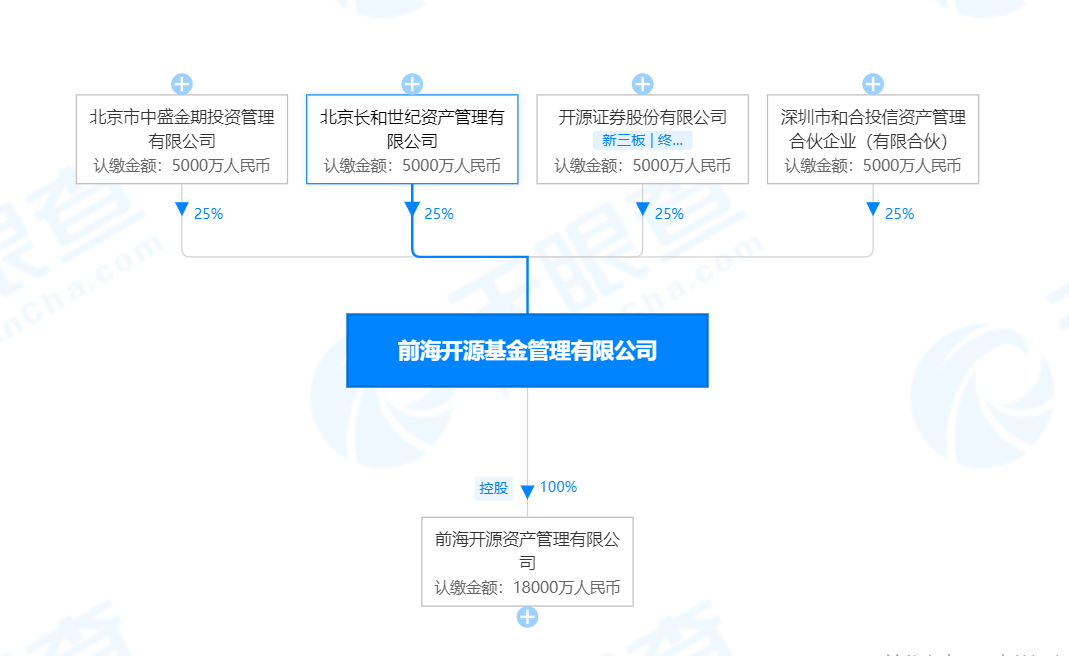 天眼查App显示,开源证券是前海开源基金的四大股东之一,其余三个股东分别是北京中盛金期投资管理有限公司、北京长和世纪资产管理有限公司、深圳市和合投信资产管理合伙企业。四者各持股25%。证监会还要求开源证券就如何防范公司、前海开源基金、鹏安基金3家公司之间利益冲突与输送进行说明。