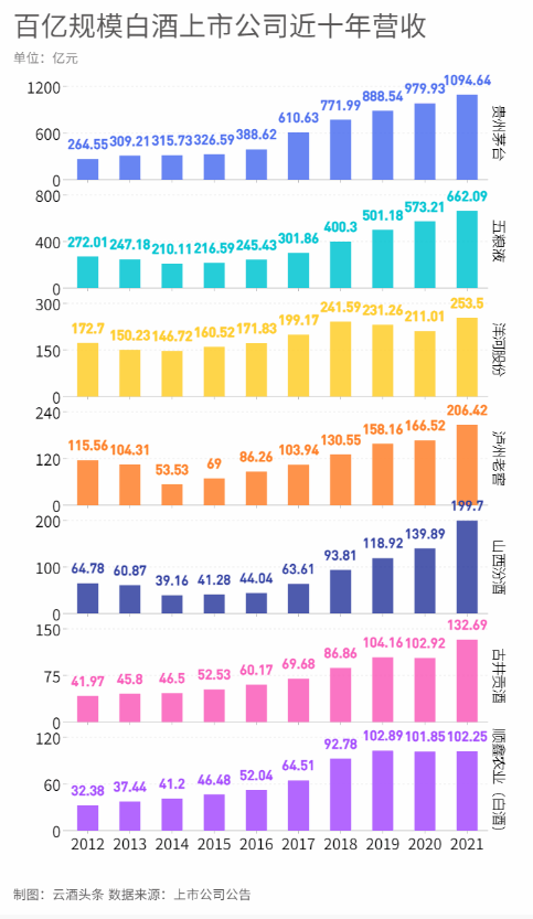 为了更直观地剖析中国酒业的这十年,云酒大数据中心(微信号:云酒头条)对相关数据进行了盘点。