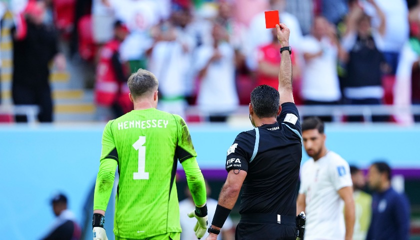 易边再战,第51分钟时,伊朗队连续创造了两脚有威胁的射门,但都打在门柱偏出。第85分钟,威尔士门将亨内西出击放倒了伊朗前锋塔雷米,被红牌罚下,这也是本届世界杯第一场红牌。第97分钟,伊朗队中卫鲁兹贝赫·切什米帮助伊朗队取得首球。第100分钟,拉明·雷扎伊安再入一球,伊朗队以2-0取得胜利。
