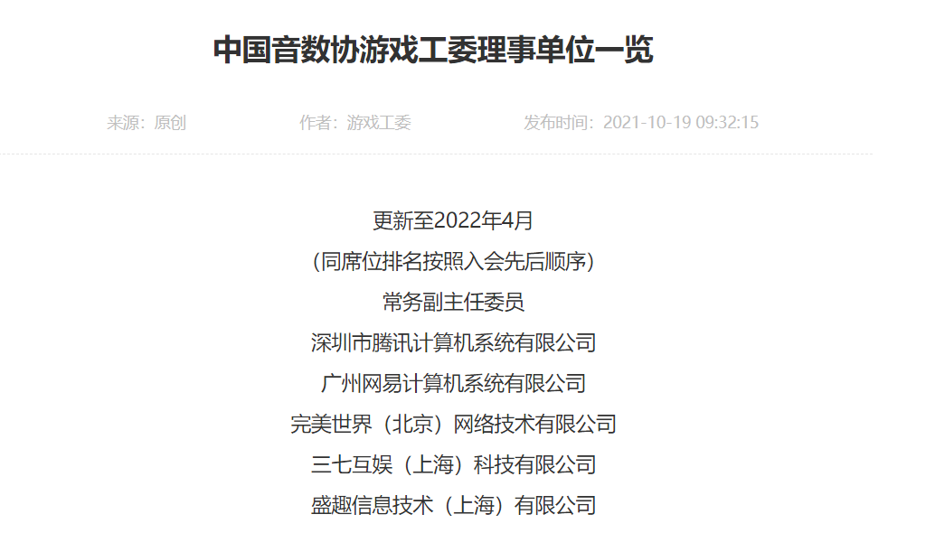 在组织的理事单位名单里,腾讯、网易、完美世界、三七互娱等游戏厂商巨头,均位列常务副主任委员名单里。
