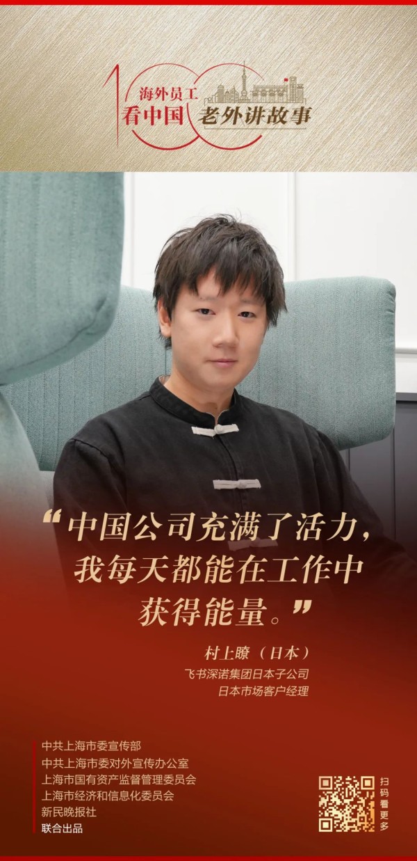 日本青年村上瞭入职飞书深诺至今约一年时间,他在工作中感受到中国新创公司的蓬勃活力,发现自己的兴趣爱好可以与工作内容很好地结合起来,且每天都在学习新知识、新技能,因此收获满满;生活中,村上瞭也看到包括他自己在内的不少日本民众开始购买、使用并喜爱上中国品牌的产品。