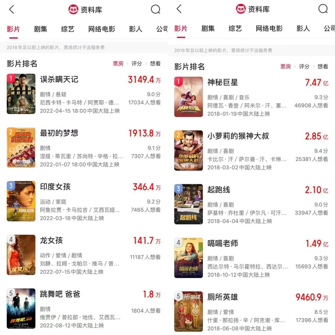 以前为国内贡献过黑马批片的国度——英国、印度等,如今也不灵验了。今年从英国引进的群星参演的《尼罗河上的惨案》《唐顿庄园2》票房均不过亿。印度引进的5部批片最高票房仅为三千万,而2018年引进的10部印度批片,票房最高7亿,最低为三千万。