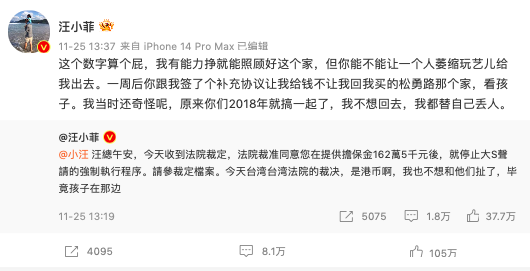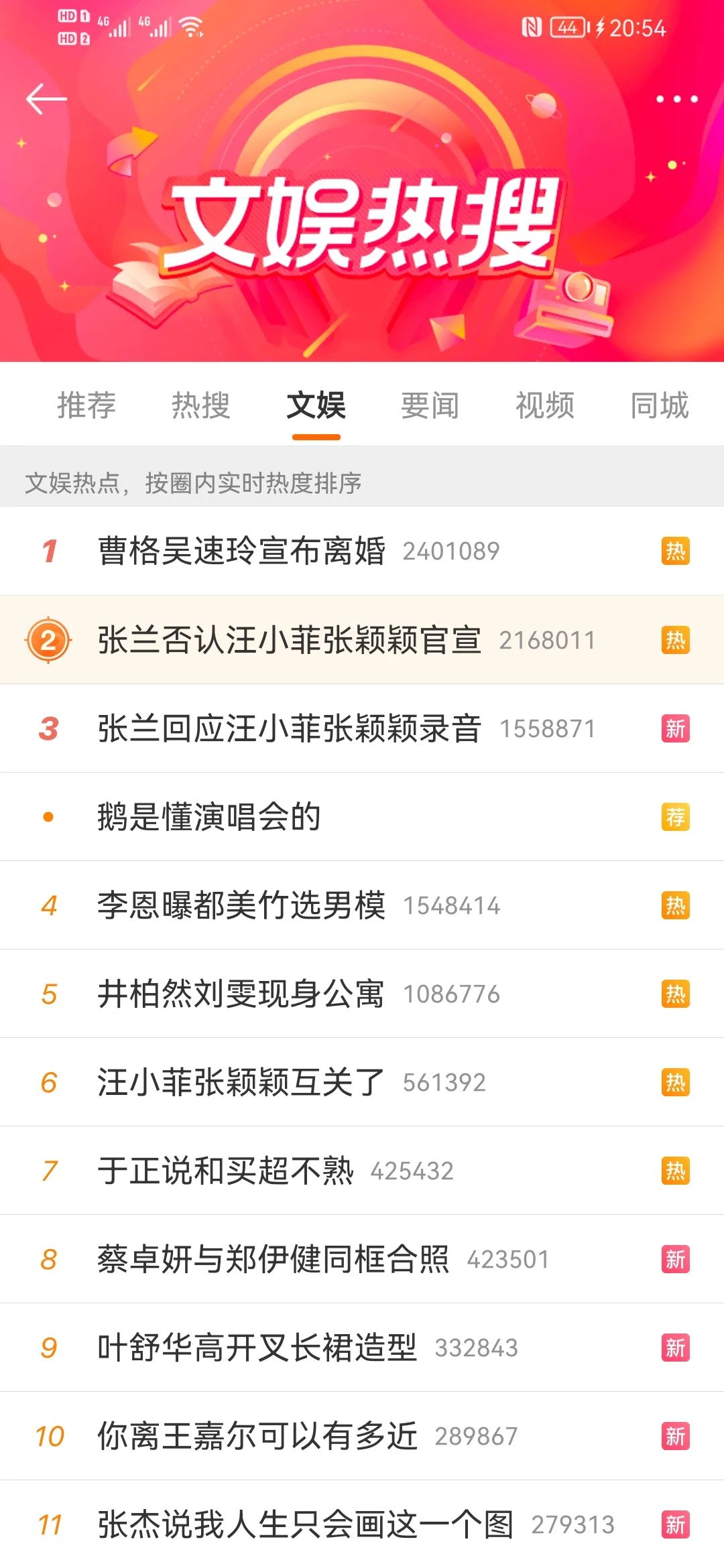 11月25日,有网友曝光了多段汪小菲跟张颖颖的私密对话录音,既有双方吵架、爆粗口的,又有汪小菲向张颖颖求和表白。同一天,汪小菲在微博发文,“原来你们2018年就搞一起了,我不想回去,我都替自己丢人。”随后汪小菲与张颖颖微博互关,疑似官宣。