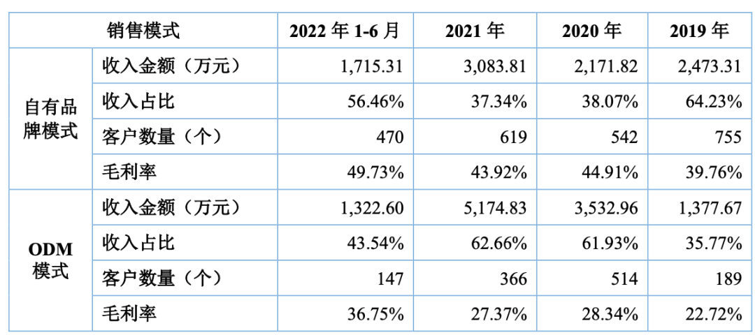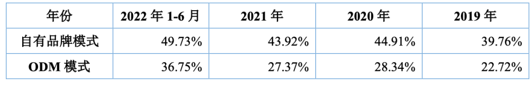 但从毛利率来看,虽然这几年代工的毛利率有所提升,但还是跟自有品牌模式的毛利率有所差距。2022年上半年,自有品牌和ODM代工的毛利率分别是49.73%和36.75%。